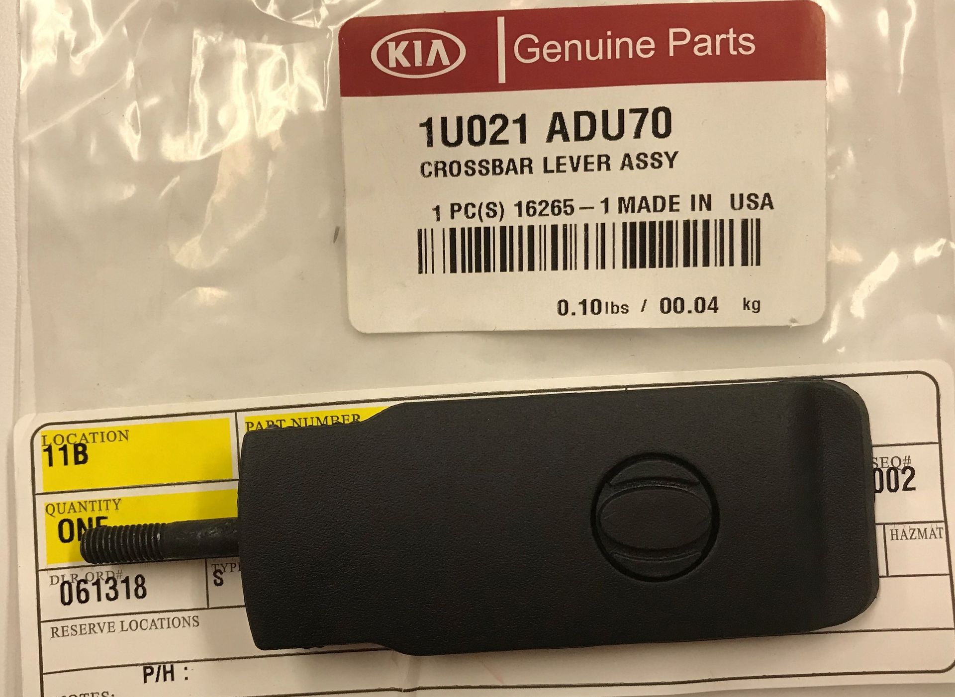 Kia.Parts is your leader for genuine OEM Kia Parts and Accessories. When you order your Roof Rack, Lever (Service Parts) (1u021adu70) from us you will receive a genuine OEM part in the mail, in just a matter of days. Your Roof Rack, Lever (Service Parts) will be backed by a warranty and is guaranteed to fit your 2011-2013 Kia Sorento vehicle. We even offer a VIN verification system at checkout to ensure fitment.